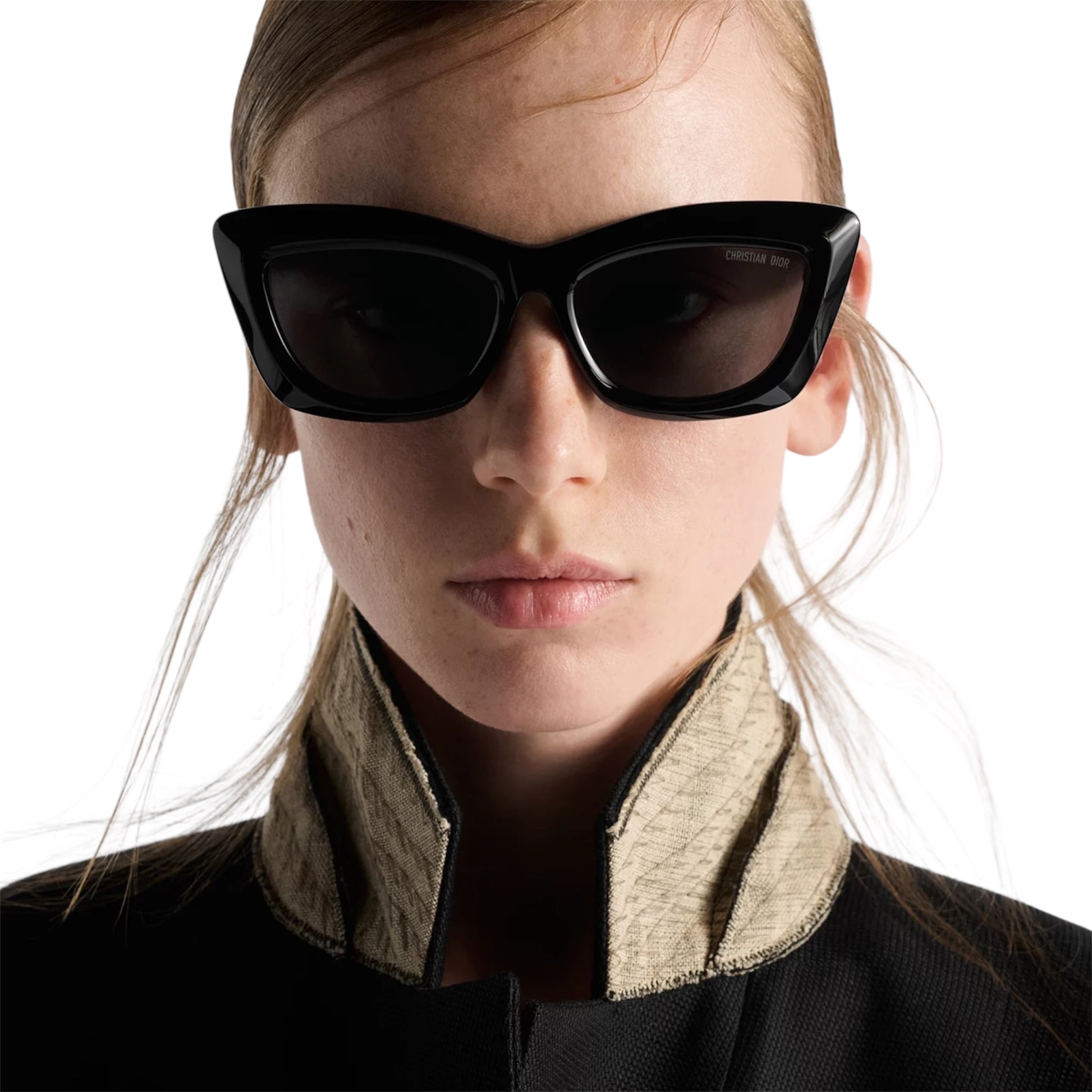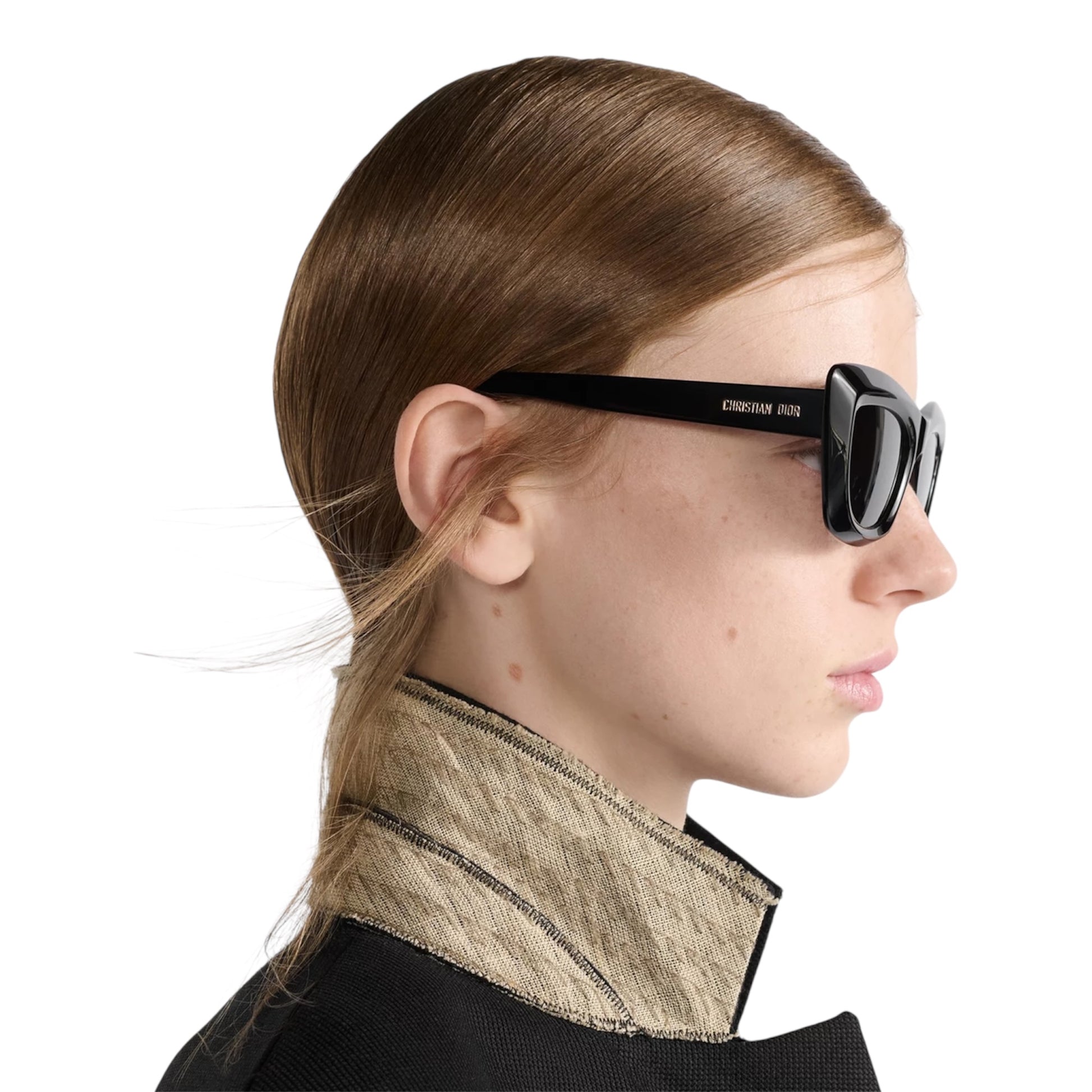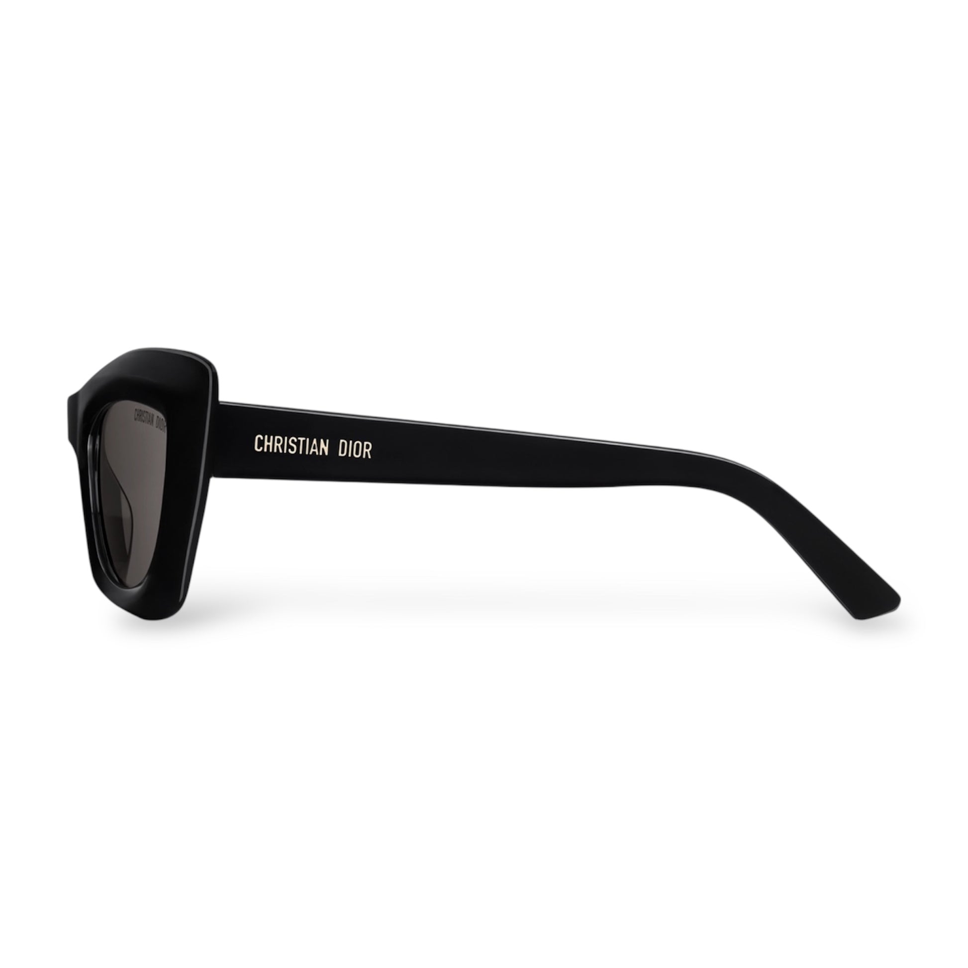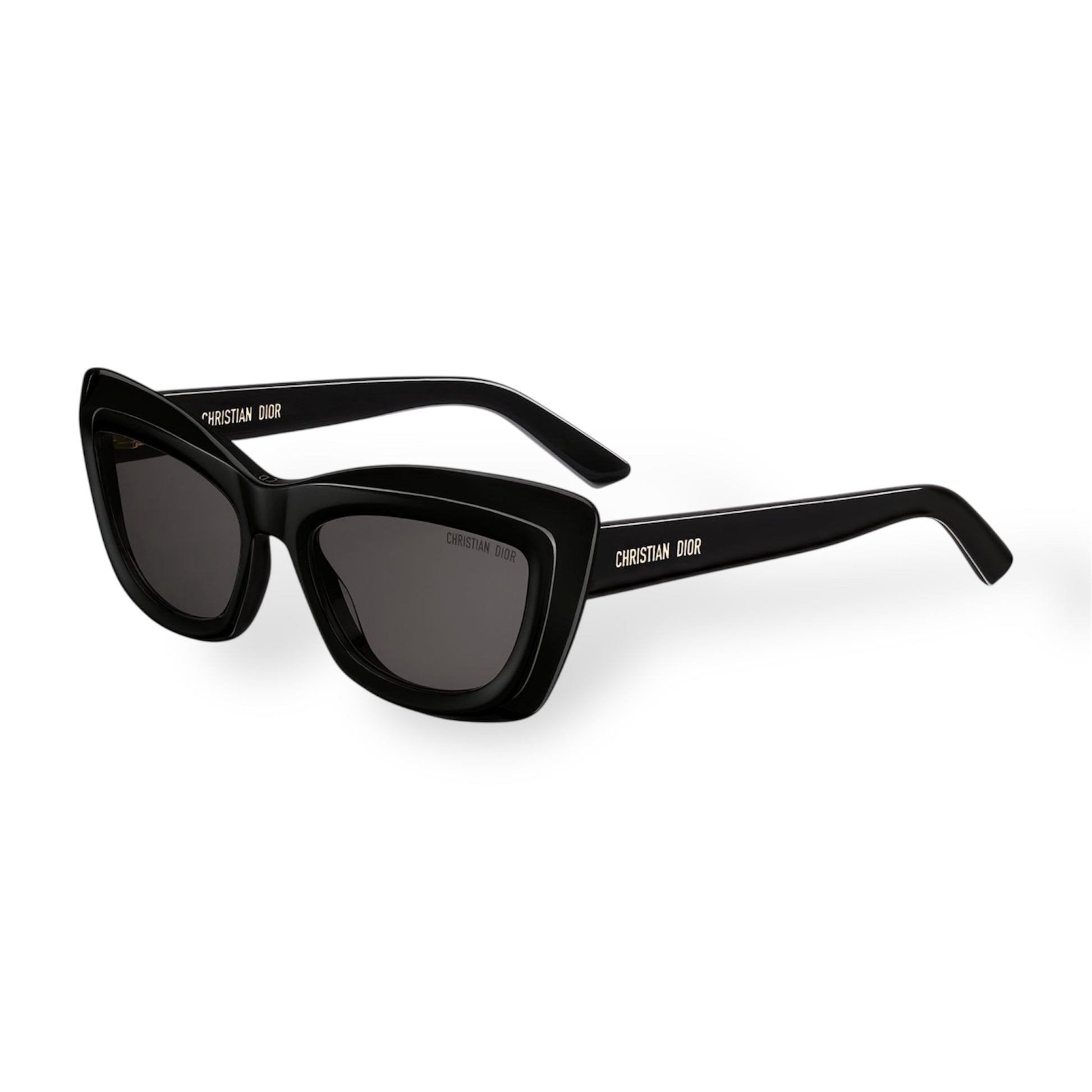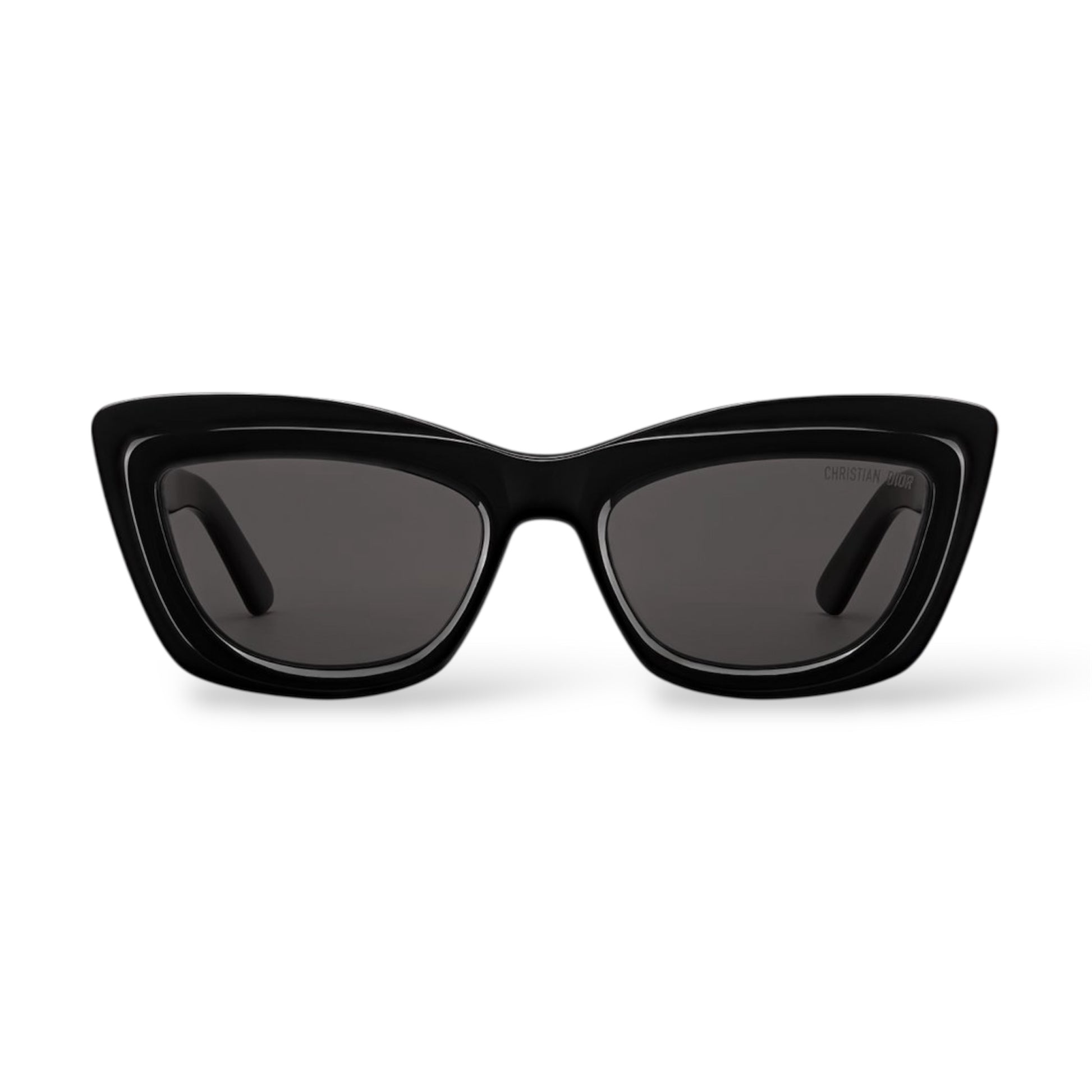 The DiorMidnight B3I captures the timeless elegance of Dior with a bold butterfly silhouette in glossy black acetate. Grey lenses and gold signature details on the temples enhance its refined character, making it a sophisticated accessory for any occasion.