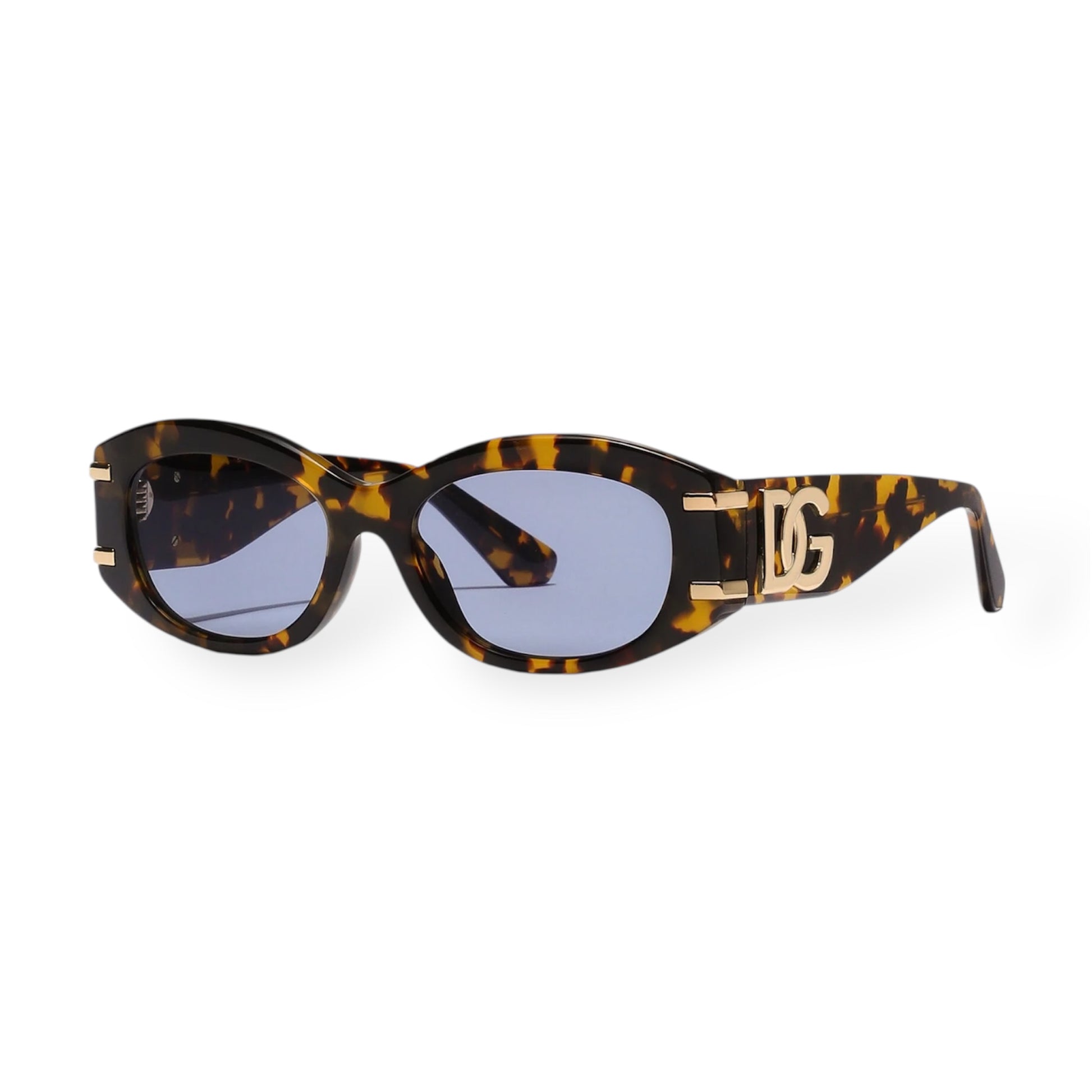 - Temples: Yellow-havana acetate with DG metal logo