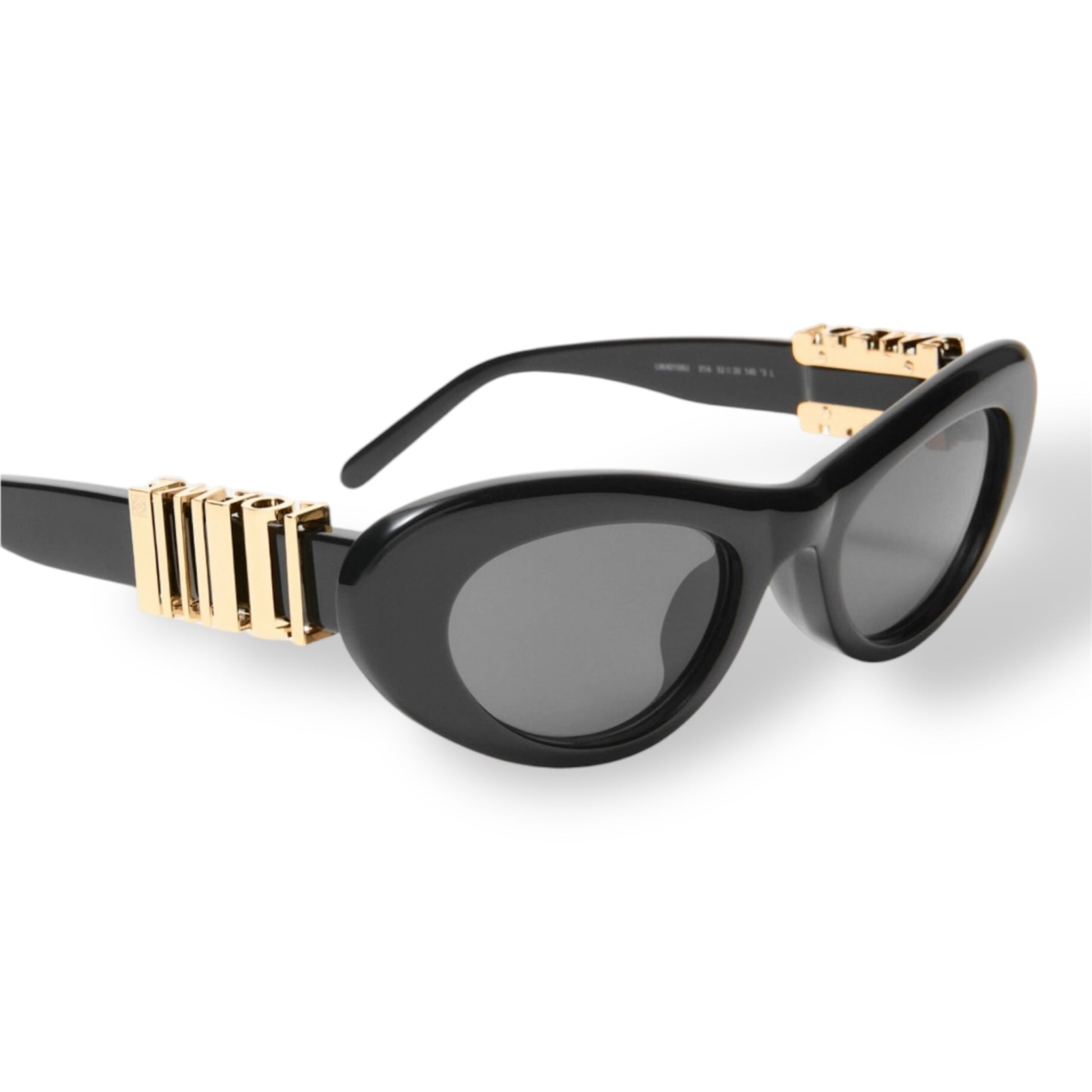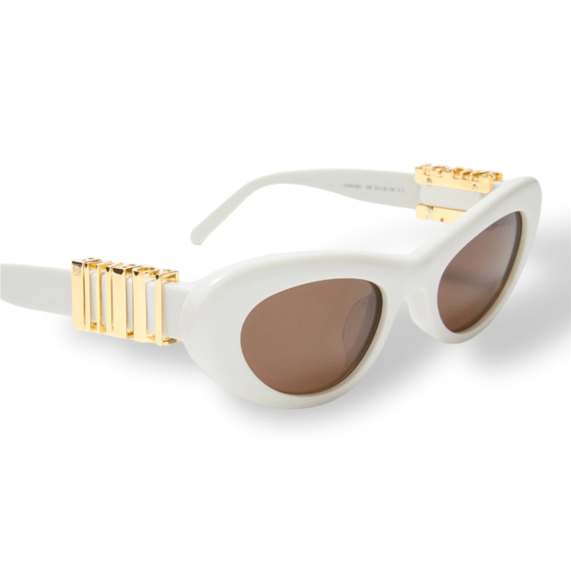 A modern take on the classic cat eye shape, the Loewe Cocktail sunglasses feature a slim acetate frame with a sleek, lightweight design. The barcode LOEWE logo on the temples adds a distinctive touch, while the gold-finish metal details elevate the look. Offering 100% UVA/UVB protection and a universal fit, these sunglasses blend elegance with everyday wearability.